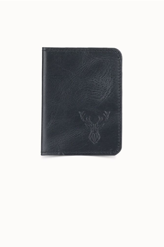 Guard Deer Printed Antique Black Leather Card Holder