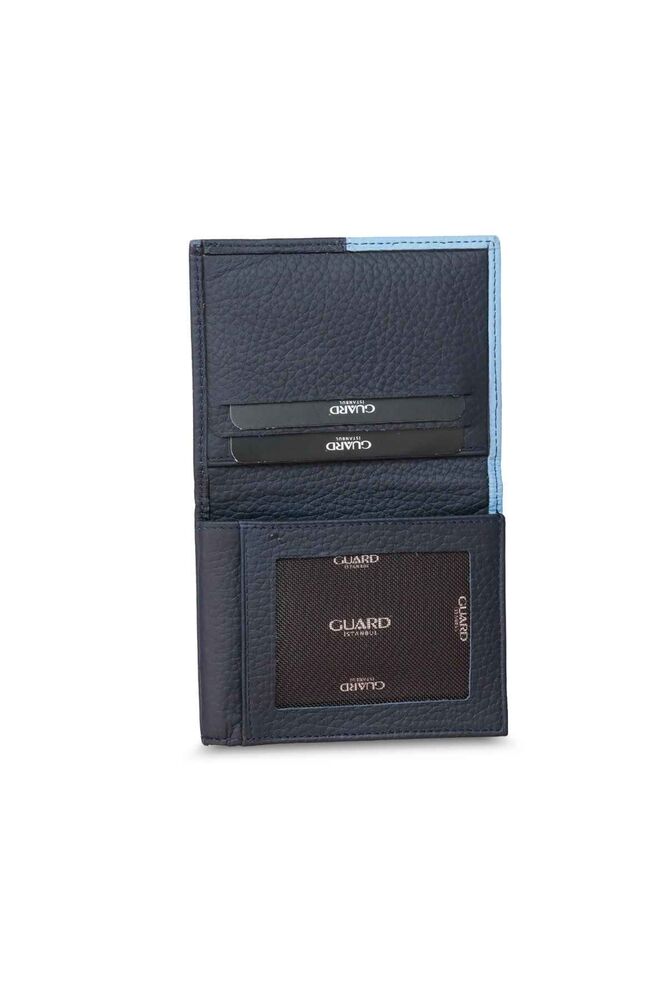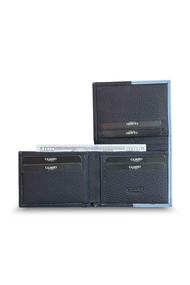 Mat turkuaz/lacivert deri erkek cüzdan minimal spor tasarıma sahiptir. Toplamda 6 adet kart, 1 adet şeffaf kimlik/ehliyet, 3 adet gizli cep bulunmaktadır, ayrıca 1 adet de kağıt para bölümü var.