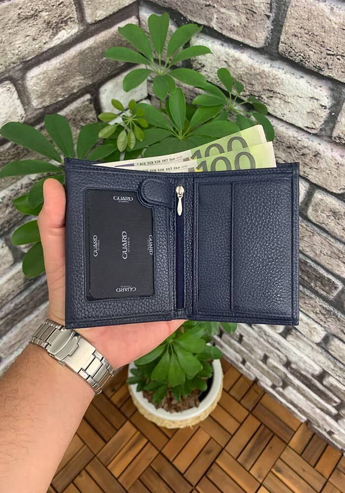 If you are looking for a multi-compartment navy blue leather men's wallet, you will probably like our Oldies model. It has a slightly larger size compared to normal wallets. But it can be easily carried in the back pocket. There are 8 card compartments, 2 photo compartments (can also be used as an ID / driver's license section), 1 transparent ID / driver's license section, 1 zippered pocket and 1 coin section.