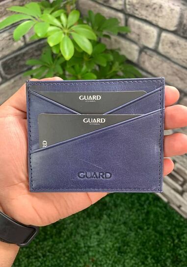 Guard Antique Navy Blue Genuine Leather Card Holder