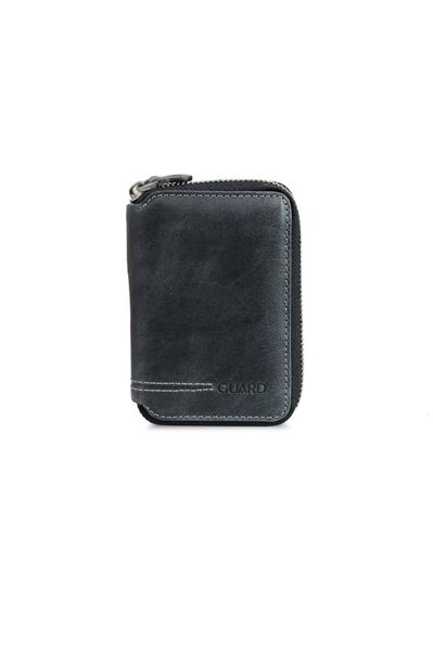 Guard Zipper Antique Black Leather Mini Wallet
