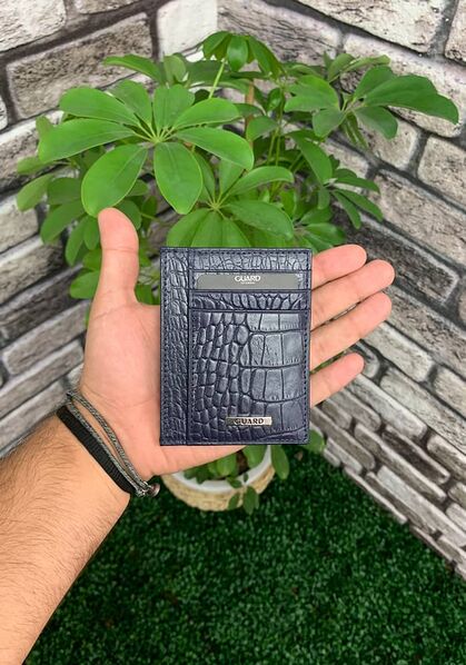 Guard Navy Blue Croco Print Leather Card Holder