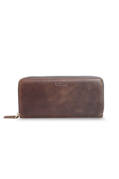 Guard Çift Fermuarlı Crazy Kahve Deri El Çantası