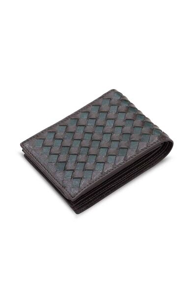 Guard Knitted Patterned Brown Green Leather Men's Wallet