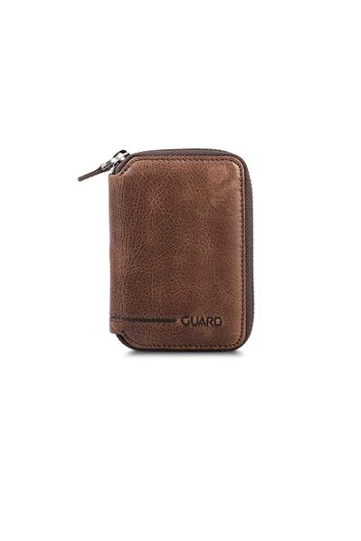 Guard Zipper Antique Brown Leather Mini Wallet