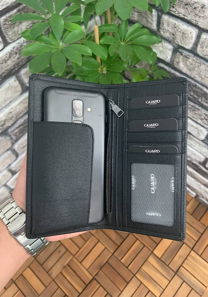 Ana bölüm içerisinde 6 adet kartlık, 1 adet şeffaf kartlık toplamda 7 kartlık vardır. 3 adet kapalı bölme, 1 adet fermuarlı bölme ve 1 adet tüm modellerle uyumlu telefon haznesi vardır.