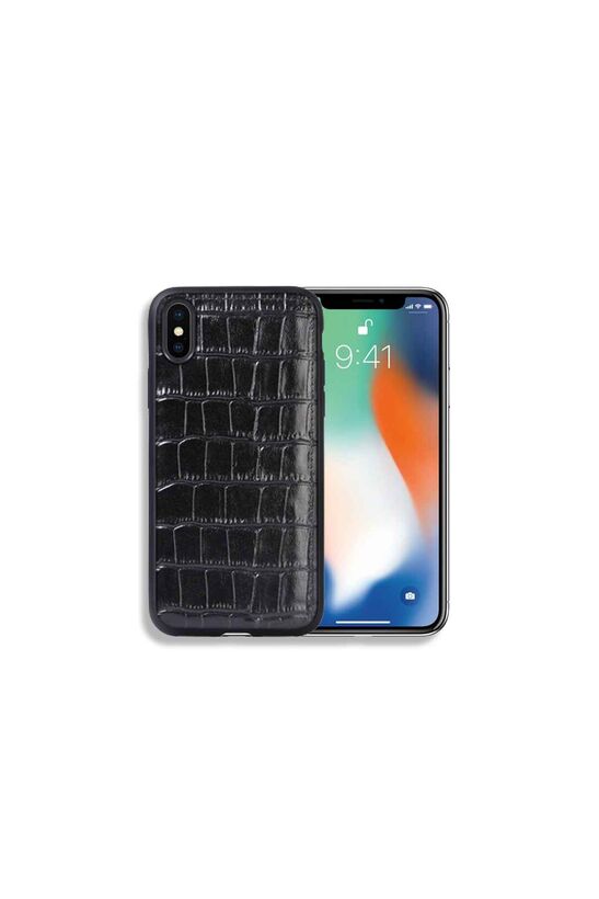 Guard Timsah Baskılı Siyah Deri iPhone X / XS Kılıfı ile telefonunuz hem güvende hem de tarzınızı yansıtıyor!